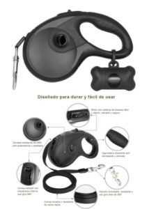 Su agarradera es de material que se siente durable y cómodo, un plus de esta correa es que incluye un dispensador de bolsas, que te ayudará a siempre llevar donde poner las heces de tu perrhijo. ¿Bastante ideal cierto? Un producto que tiene más de 600 reseñas positivas en Amazon